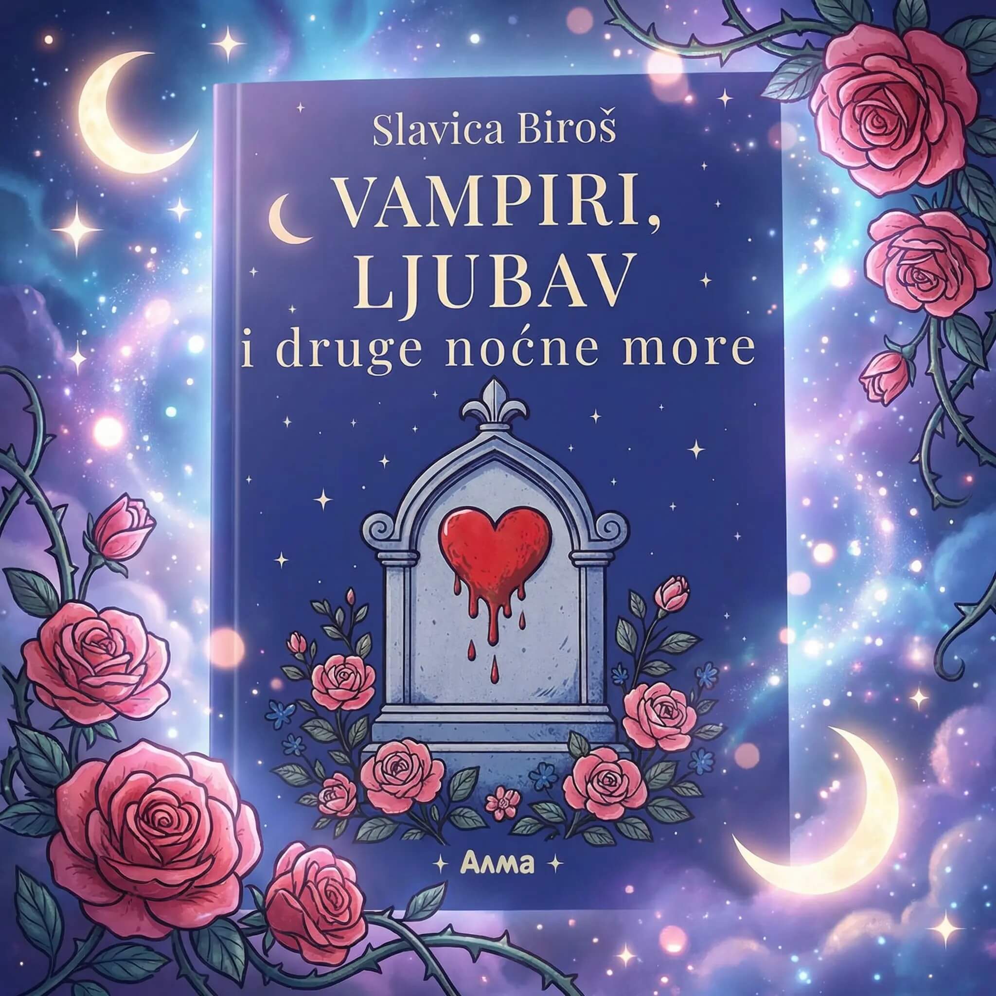 Ovaj savremeni roman o vampirima u Novom Sadu je pun obrta i akcije! To je domaći vampirski roman koji nije tu da se plašimo mraka, nego da probamo da ga… razumemo. Ovo je roman prvenac Slavice Biroš na kome se radilo predano i s ljubavlju, inspirisan i svetom ,,Harija Potera”, romanima Nenada Gajića, serijama poput ,,Čari” i ,,Vampirskih dnevnika” i to je samo početak jedne duhovite priče, koja je u isto vreme i pomalo ozbiljna.